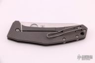 This C211TIP Spydie Chef by Spyderco features a satin finished drop point blade with thumbhole. The handle is comprised of a blasted and tumbled titanium frame over barrel spacers. The tip up clip is reversible for left or right hand carry. Includes original box and papers. Light scuffs/scratches are visible on the blade and handle otherwise the knife is in good condition.