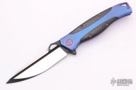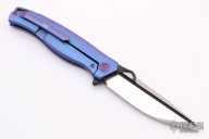 The 606 model is absolutely awesome in every way imaginable. It's a gorgeous knife that can flex between tactical and everyday carry tasks with ease. We love the wicked cool blade shape, ergonomic handle, and lightning fast action this knife possesses - it makes you want to carry and use this knife whenever you possibly can. The 3.5" drop point blade is made from CPM-S35VN stainless steel with a two-tone finish. The action riding on ceramic ball bearings is buttery smooth and the lockup is nice and tight. The ergonomic handle is made from contoured 6Al4V titanium with a blue anodized finish, purple custom hardware, and beautiful carbon fiber inlays. The shape locks it into your hand and the thumb ramp is perfectly executed for comfortable extended cutting tasks. The pocket clip, backspacer, screws, pivot cap, and washers are all 6Al4V titanium for maximum quality assurance and you have a replaceable lockbar insert for longevity. You can use this knife for anything from self-protection to slicing open mail and everything in between.