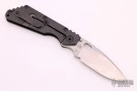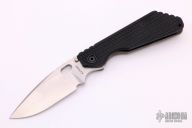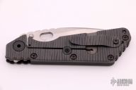 This MSC SMF framelock folder by Mick Strider features a stonewashed blade and a dimple pattern black aluminum and flamed titanium frame and tip up titanium clip. Includes Hinderer "Lock Bar Stabilizer" for maximum reverse lock retention. Nice detent, lockup and blade seating. Excellent condition.
