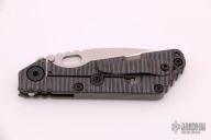 This MSC SNG framelock folder by Mick Strider features a stonewashed finished blade and a dimple pattern black/green/grey G-10 and flamed titanium frame and tip up titanium clip. Includes "Lock Bar Stabilizer" for maximum reverse lock retention. Nice detent, lockup and blade seating. Excellent Condition.