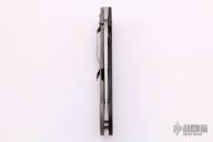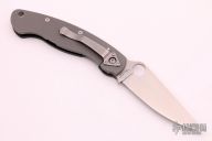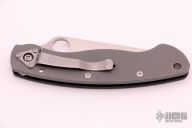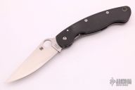 This Military Framelock by Spyderco has a satin finished blade with notched thumbrest and thumbhole. Handle is a carbon fiber and titanium frame, with a stainless steel tip down clip, and lanyard tube. Has a stainless lockface insert. Excellent condition. Comes with original box and papers.
