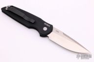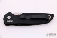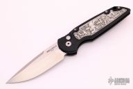 This TR-3.5 model has a black finished handle with a Shaw Steampunk inlay and a satin finished blade. The TR-3 Auto is an offering from Protech Knives. It features a 6061-T6 aluminum handle with a black finish and a nickel silver inlay. The 154-CM steel blade is black finished with a plain edge. Black coated pocket clip and hardware finish off the design. Includes the original box and papers. Prototype #28 of 40