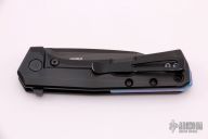 This 0808 Flipper from Zero Tolerance is a Todd Rexford design. It features a black drop point blade.  The handle has a black titanium frame over an anodized titanium backspacer. Stainless steel tip up reversible clip. Lanyard hole in pommel. Includes a padded zippered case. Excellent Condition.
