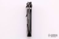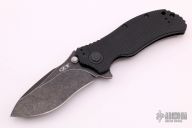 This 0300BW frame lock flipper by Zero Tolerance features a recurve spearpoint blade with a blackwash finish, textured black G10 and titanium scales. It also features the Speedsafe assisted opening system. 4-way reversible black stainless steel clip. Excellent condition. #0120.
