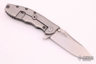 This Hinderer Designed 0562 Framelock Flipper has a drop/ spear point blade with swedge, notched thumb rest, dual thumb studs and flipper. Handle is G10 and stonewashed titanium - with stainless steel lockbar insert and lockbar stabilizer. Stainless steel clip is tip up. Includes original box and papers. Some scuffs and scratches on the blade and clip otherwise good condition. #0319