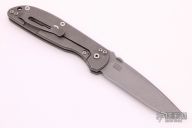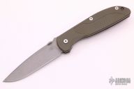 This Firetac, by Hinderer features a drop point blade. The frame and the blade both have a stonewashed finish. The handle consists of textured green G-10. The pocket clip is reversible. The thumbdisc is removable; there is a lanyard hole at the bottom. Excellent Condition.