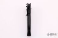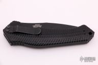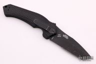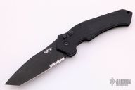 This 0610ST side opening automatic by Zero Tolerance Knives features a black coated partially serrated tanto 154CM blade. Sliding safety with textured aluminum handle, tip up or down reversible black stainless steel clip. Quick firing. Discontinued, very rare! S/N 0194 and dated July 08.  Has scuffs, scratches, and is dirty, otherwise fair condition.