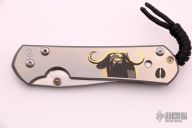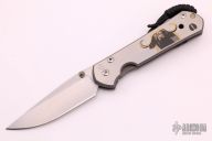 This Large Sebenza 21 CGG "Cape Buffalo", by Chris Reeve Knives features a stonewashed blade with single anodized titanium thumbstud, notched thumbrest. The frame is bead blasted titanium with matching tip up clip; the front scale is satin finished with the computer generated graphic. Nice detent, lockup and blade seating. Comes with original box, sheath and COA dated January 31, 2019. Excellent condition.