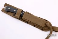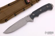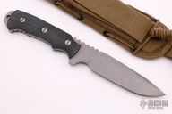 "The Fieldtac was designed as hard use tactical tool for all environments. Whether your needs are simple camp chores, or high speed tactical endeavors, you can depend on the uncompromising quality, and unfailing performance of the Fieldtac. The handle shape has a deep forward finger groove and aggressive jimping to enhance your grip and control of the blade under all-weather operations and extreme conditions. The top edge of the blade also has jimping just forward of the handles to enhance the grip when putting downward pressure on the blade with your thumb. There is also a forward Choil that you can utilize for the finer cutting chores. The .235” thick blade can withstand all of your toughest tasks. **This Fieldtac is hand ground by Rick." Comes with a Spec-Ops brand sheath. Excellent condition.