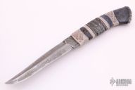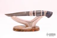 Roger Bergh is from Bygdea Sweden and specializes in Scandinavian style fixed blade knives with Damascus and natural handle materials. He started his knifemaking career working with leather in 1969. By 1973 he was making knife handles, and by 1995 after 15 years as a part-time knifemaker he started forging his own Damascus steel under the supervision and training of Conny Persson.