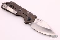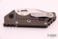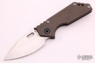 This 3/4 AR by Strider Knives features a stonewashed blade with notched thumbrest and thumbhole. The handle has a tumbled and anodized titanium frame with a stonewashed titanium tip up clip. Nice detent, lockup and blade seating. Excellent condition.
