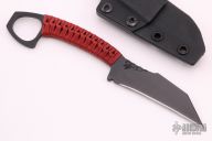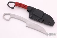 SHPOS "Sub Human Piece Of Shit" elite cerakote finish, rock work spine, 7.75" overall, 3" blade, .12" thickness, s35vn American steel, rc60. Includes suede lined black kydex sheath with metal belt clip, belt clip can be positioned for either side of sheath. Blade designed by Special Operators for easy carry and easy access in plate carrier or in low vis situations, for pushing or stab and slash movements. Excellent condition. Comes with aluminum trainer.