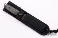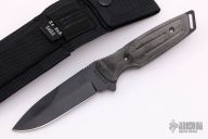 This 1461 Impact Series Spear Point by Ka-Bar features a black blade with false top edge and notched thumbrest, .172" blade stock and 1.285" blade depth, full tang construction with black linen micarta scales. Coems with black nylon sheath. Excellent condition.