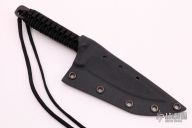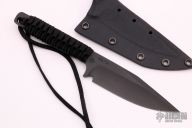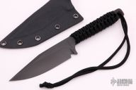 This knife by Mick Strider features a black blade with paracord wrap, .214" blade stock and 1.238" blade depth, full tang construction. Comes with kydex sheath. Excellent condition.