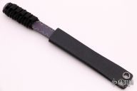 In 1988, he began making specialized knives for use by the military. This turned out to be fortunate turn of events, both for Mick and for the knife using world at large. Mick’s approach was to not get burdened by the weight of past designs. He started with a tabula rasa, a clean slate, informed only by his own experiences and knowledge of what a soldier needed in a knife. The knives he made didn’t look like the hunter-inspired knives seen in most PXs; instead they were almost brutish in their functionality: beefy, solid, and with unbreakable ¼” stock full tangs. These knives were the first indication of his innovative approach: in addition to their utilitarian design, the knives carried a subdued finish and subdued sheaths. No one carrying a Strider knife was going to be spotted because of sunlight glinting off of polished steel or a glossy leather sheath. Soldiers, policemen, and other men going into harm’s way couldn’t buy them fast enough. Mick sampled some good ideas, but made them great. For instance, he was not the first to wrap a knife handle with paracord, but he was the first to do it in a way that was tough enough for sustained infantry use. His knife line grew over the following years to include different varieties of fixed blades, all distinctive and many with specialized uses. But constant in all of them was a disregard for convention, and a desire to try new ideas. An example of this was the Ajax – it featured a very wide blade surface clearly designed to inflict damage. It drew on the weapons carried by Roman legionnaires, yet was modern and usable in the 21stCentury battlefield. Mick also worked on his technical skills, always striving to become better at the physical craft. At the 2002 Blade Show, a group of the best tactical knifemakers in the country decided to compete with each other to produce the most innovative and interesting fixed “battle blade” at the show. Mick’s entry, an incredible integral knife made out of ½” titanium stock with a zippered composite blade, gorgeous handles, and integral guard was the unanimous winner, and effectively retired the competition.
