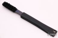 In 1988, he began making specialized knives for use by the military. This turned out to be fortunate turn of events, both for Mick and for the knife using world at large. Mick’s approach was to not get burdened by the weight of past designs. He started with a tabula rasa, a clean slate, informed only by his own experiences and knowledge of what a soldier needed in a knife. The knives he made didn’t look like the hunter-inspired knives seen in most PXs; instead they were almost brutish in their functionality: beefy, solid, and with unbreakable ¼” stock full tangs. These knives were the first indication of his innovative approach: in addition to their utilitarian design, the knives carried a subdued finish and subdued sheaths. No one carrying a Strider knife was going to be spotted because of sunlight glinting off of polished steel or a glossy leather sheath. Soldiers, policemen, and other men going into harm’s way couldn’t buy them fast enough. Mick sampled some good ideas, but made them great. For instance, he was not the first to wrap a knife handle with paracord, but he was the first to do it in a way that was tough enough for sustained infantry use. His knife line grew over the following years to include different varieties of fixed blades, all distinctive and many with specialized uses. But constant in all of them was a disregard for convention, and a desire to try new ideas. An example of this was the Ajax – it featured a very wide blade surface clearly designed to inflict damage. It drew on the weapons carried by Roman legionnaires, yet was modern and usable in the 21stCentury battlefield. Mick also worked on his technical skills, always striving to become better at the physical craft. At the 2002 Blade Show, a group of the best tactical knifemakers in the country decided to compete with each other to produce the most innovative and interesting fixed “battle blade” at the show. Mick’s entry, an incredible integral knife made out of ½” titanium stock with a zippered composite blade, gorgeous handles, and integral guard was the unanimous winner, and effectively retired the competition.