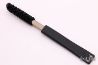 In 1988, he began making specialized knives for use by the military. This turned out to be fortunate turn of events, both for Mick and for the knife using world at large. Mick’s approach was to not get burdened by the weight of past designs. He started with a tabula rasa, a clean slate, informed only by his own experiences and knowledge of what a soldier needed in a knife. The knives he made didn’t look like the hunter-inspired knives seen in most PXs; instead they were almost brutish in their functionality: beefy, solid, and with unbreakable ¼” stock full tangs. These knives were the first indication of his innovative approach: in addition to their utilitarian design, the knives carried a subdued finish and subdued sheaths. No one carrying a Strider knife was going to be spotted because of sunlight glinting off of polished steel or a glossy leather sheath. Soldiers, policemen, and other men going into harm’s way couldn’t buy them fast enough. Mick sampled some good ideas, but made them great. For instance, he was not the first to wrap a knife handle with paracord, but he was the first to do it in a way that was tough enough for sustained infantry use. His knife line grew over the following years to include different varieties of fixed blades, all distinctive and many with specialized uses. But constant in all of them was a disregard for convention, and a desire to try new ideas. An example of this was the Ajax – it featured a very wide blade surface clearly designed to inflict damage. It drew on the weapons carried by Roman legionnaires, yet was modern and usable in the 21stCentury battlefield. Mick also worked on his technical skills, always striving to become better at the physical craft. At the 2002 Blade Show, a group of the best tactical knifemakers in the country decided to compete with each other to produce the most innovative and interesting fixed “battle blade” at the show. Mick’s entry, an incredible integral knife made out of ½” titanium stock with a zippered composite blade, gorgeous handles, and integral guard was the unanimous winner, and effectively retired the competition.
