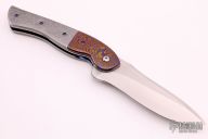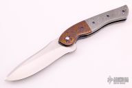 "I consider myself a part time Hobbyist knife maker that works in the shop between October and April every year and make about 5 knives a year total. I have been fascinated with cutlery from as far back as I can remember. I started out collecting factory knives. But I could always find faults with them. I then moved into the custom world and sold all the factory knives. Then I figured why not try my hand at making knives. So I slowly bought parts, knife making books and a few machines and gave it a go. In 1996 when I got a little older and had a few spare dollars to play with I tried my hand at cutlery but didn't have much success at the time. Soon after that I bought my first computer and researched anything to do with cutlery. I came upon Bladeforums which was the only knife related forum out there. They soon had a chat forum put on their server and after a short time on the chat forum I found out I was talking to Kit Carson every evening. I didn't know who Kit was at the time other than a knife maker. But Kit was very gracious and helped answer my many, many questions. In 1998 after a few months of questions, I was invited to Kit's house to learn. Since then, I have been back there many times and think the world of the entire Carson family, true southern hospitality at its finest. In 1999 George Young helped me with learning file work and working in Stellite/6K. I was fortunate to be able to buy some of Georges' equipment since he was winding down with his knife making career. In 2000 I was invited over to Darrel Ralph's house. Darrel helped me set up a few machines I bought. He built me mirror blocks and helped me to refine my knife making skills by doing my first auto knife under his supervision. In 2000 Alan Folts was very helpful in helping me obtain color on my knives with anodizing. Alan is the Ti coloring wizard. In 2007 Lee Williams helped me to understand the geometry behind the flipper. My flippers worked OK, then but Lee really helped me to get them dialed in to flip with just a finger."