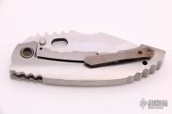 Dalibor Bergam lives in Croatia. "My love for knives began very early , my grandpa gave me my first knife when I was a little kid , maybe 7 or 8 years old.. ever since than I was hooked! I tried making my first knife right after finishing college of Civil Engineering. I couldn't find a job...so I thought that was the perfect time to try and build my own knife. I always wanted to make my own knife...but that proved to be harder than I thought! Funny thing is that I had absolutely no prior knowledge in metal working and things like mill , lathe or a surface grinder were all strange to me and really didn't know how they looked like let a lone how to work with them. Soon after my initial idea of making knives I got my first materials , sheet of Ti and two sheets of s30v , needless to say I screwed up titanium and s30v completely... My first tools were my grinder and a drill press... now my grinder was a piece of crap , took about one day to grind a blade pre heat treat, after I got it back from HT it would take another day to finish it . Little by little I was investing all my spare cash into new equipment and better tools... and I can tell you that you always need more tools and machines. When it comes down to why I make knives the way I do, so thick and overbuilt, I guess the simplest answer is that I just love them overbuilt! And each knife I make, I make it just as I'm making it for my self!!! I remember when I first saw a Strider.. fell in love on the first glance, soon after I got my first SMF and was blown away by the toughness and yet simplicity of the design! As you can all see Strider was a huge influence on my work, love the huge pivot and the external stop pin as in my opinion it's the absolute toughest combination for a hard use knife."