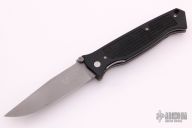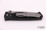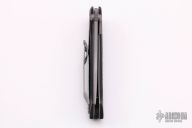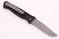 This Lefty Chameleon D/A linerlock by Butch Vallotton has a hidden push button under the rubber scale on the back side of the handle. Leaf spring action and smooth manual action. Bead blasted blade and FRN handle scales with rubber inlays, stainless steel liners and tip up clip. Good function, good lockup and blade seating. Numbered #414 on back side of blade. Scuffs/scratches are visible on the blade and handle otherwise the knife is in Excellent condition.
