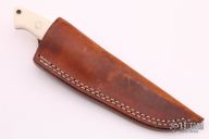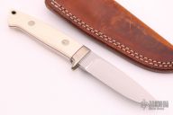 This Loveless Drop Point Hunter by WC Davis features a mirror polished drop point blade, nickel silver fittings, and mammoth ivory scales with red liners, .183" blade thickness and .978" blade depth, full tapered tang. Comes with a brown leather sheath. Excellent condition. Sporting Classics 1 of 75