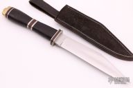 ABS Journeyman Smith Peter Bromley has been making knives part-time for over twenty-five years. Peter prides himself on sole authorship and forges, heat treats and does all the leather work using many machines he has built himself. Working exclusively with carbon steels and his own forged Damascus, he crafts lock backs, liner locks, and friction folders as well boot, neck and a series of hunting knives. Peter is additionally recognized for his historical Bowies: ?I?m known as ?Bowie Maker? among the Single Action Shooters Society (SASS) and have attended the ?End of Trail? show in Albuquerque, NM each of the last dozen or so years.? He also attends BLADE West, the Northwest Knife Collectors Show in Tacoma, WA, and the Montana Knifemakers Association show, where he won ?Best Bowie? in 2008. Peter resides in Spokane, WA with his wife of forty-five years, Phyllis. He draws his greatest satisfaction as a maker from the fact that, regardless of style or embellishments, each knife is a useable tool that is made to cut.