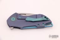 This Riverstone by Grissom Knife and Tool features a tumble finished blade with notched thumbrest and flipper. This handle has a titanium frame, backspacer, pocket clip, collars and hardware. Stainless steel lock insert, ceramic ball bearings and detent. Stainless steel standoffs, blade stop and pivot. Comes with original box and zippered case. Excellent condition.
