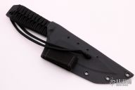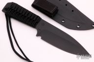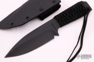 The Fixed Blade by Mick Strider features a black spear point blade with false top edge, .209" Blade Stock and 1.661" Blade Depth, full tang construction with black paracord. Comes with kydex sheath. Excellent condition.