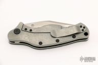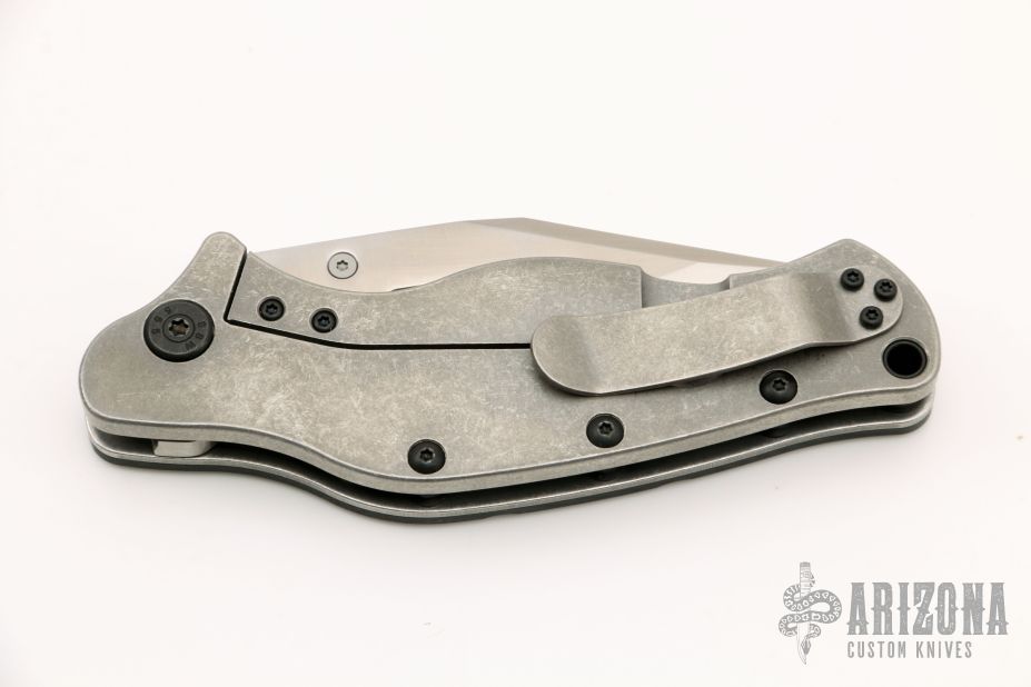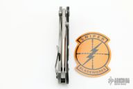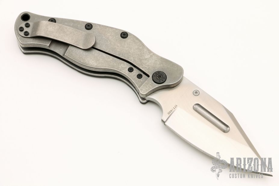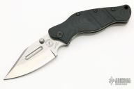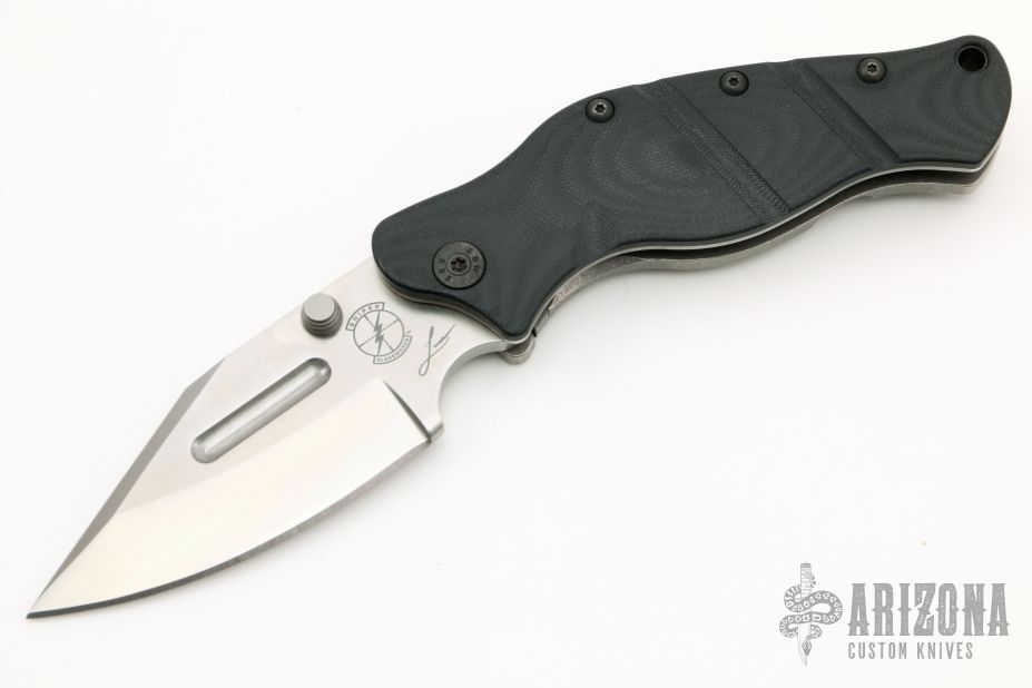 This knife has a satin finished blade with fullers and single thumbstud. The handle has black G-10 scales, tumbled titanium liner, frame and tip up clip. Has stainless lockface insert with integral over travel stop. New from maker. Limited run of 400. Serial number may differ from picture. New from maker.
