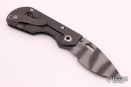 This DC by Strider Knives features a tiger stripe blade with thumbhole. The handle has a flame finished titanium frame with a matching titanium tip up clip. Nice detent, lockup and blade seating. New condition.
