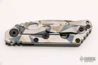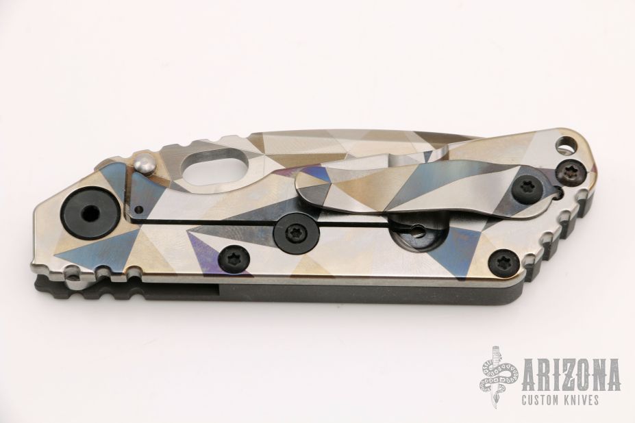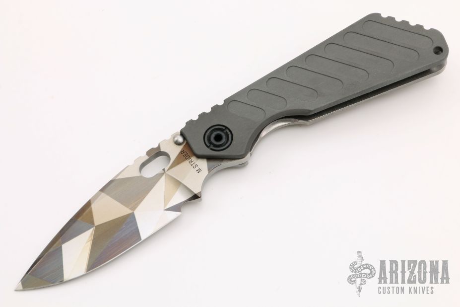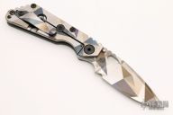 His knife line grew over the following years to include different varieties of fixed blades, all distinctive and many with specialized uses. But constant in all of them was a disregard for convention, and a desire to try new ideas. An example of this was the Ajax – it featured a very wide blade surface clearly designed to inflict damage. It drew on the weapons carried by Roman legionnaires, yet was modern and usable in the 21stCentury battlefield. Mick also worked on his technical skills, always striving to become better at the physical craft. At the 2002 Blade Show, a group of the best tactical knifemakers in the country decided to compete with each other to produce the most innovative and interesting fixed “battle blade” at the show. Mick’s entry, an incredible integral knife made out of ½” titanium stock with a zippered composite blade, gorgeous handles, and integral guard was the unanimous winner, and effectively retired the competition.