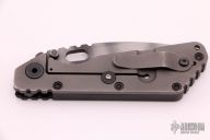 This SMF framelock folder by Strider features a tiger stripe blade and a black G-10 and bead blasted titanium frame and tip up titanium clip. Includes a "Lock Bar Stabilizer" for maximum reverse lock retention. Nice detent, lockup and blade seating. Has some scuffs, otherwise good condition.