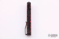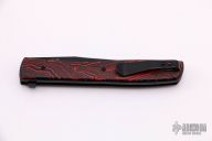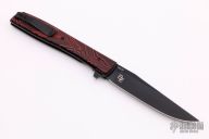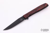 This knife is the Urban Trapper by Boker Plus, designed by Brad Zinker. The blade featurs a black blade with false top edge and notched flipper. The handle has a black titanium frame with red/black micarta scales and a single barrel spacer, and a matching tip up titanium clip. Nice detent, lockup, action and blade seating. Very smooth. Has caged bearings. Comes with original box and papers. Excellent Condition.