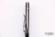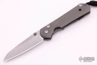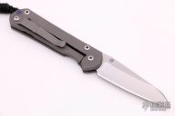 This Small Sebenza 21 Insingo by Chris Reeve Knives features bead blasted titanium frame and pocket clip, Tumble finish blade with single anodized titanium thumbstud and lanyard pin. Nice function, strong lock up, nice detent and blade seating is centered. Has been resharpened, has very slight rub/twist wear at tip of blade spine, and has some scratches on the blade otherwise good condition. Comes with original box and COA dated May 25, 2010.