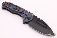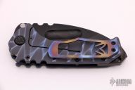 This Praetorian by Medford Knife and Tool features a PVD coat drop point blade with a notched thumbrest.  The handle features a sculpted anodized frame over a PVD backspacer with anodized titanium tip up pocket clip.  Nice detent, lock up and blade seating.  Includes the original box.  Excellent condition.