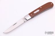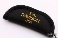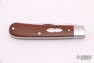 This slipjoint from T.A. Davison features a hand rub satin finished drop point blade with nail nick. The handle features brown canvas micarta covers with stainless bolsters over stainless liners, a stainless steel scutcheon, and spring. Spring is flush in the closed, half stop, and open position. Nice blade seating and function. Excellent condition. Comes with zippered case. New from maker.