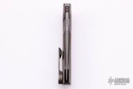 This Transient-S by Hellion Machine Collective features a two-tone tanto blade with notched thumbrest, thumbhole and flipper. The handle has a toxic finished titanium frame with tip up zircuti clip with hidden screws, zirconium backspacer. Nice detent, lockup and blade seating. Comes with cloth pouch and COA dated 2017. Excellent condition.