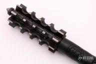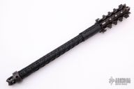 This 20" eight fin Hate Stick by Hate Stick Manufacturing Co. Force patina head with belt satin strike points. Black leather grip with windowed skull work. Very Cool. New from maker at the 2021 Blade Show.