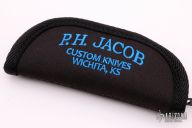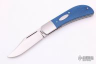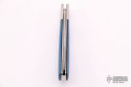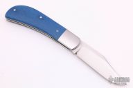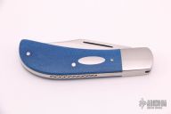 This Lanny's Clip by Phil Jacob features a hand rub satin finished blade with nail nick. The handle has stainless steel bolsters, crosscut blue canvas micarta covers over black liners, stainless steel liners and spring with Roman Knot filework.  Has half-stop, flush in all positions. Comes with zippered case.  New from Maker at the 2021 Blade Show.