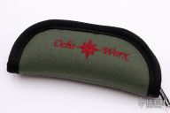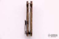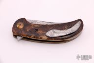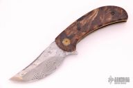This Siuslaw Linerlock Flipper by Eric Ochs of Ochs Worx features a Thor Damasteel blade with flipper. The handle has spalted maple scales, anodized and orange peel finished titanium liners, floated Thor Damasteel backspacer and tip up clip with hidden screws. Includes zippered case. Nice detent, lockup and blade seating. New from maker at the 2021 Blade Show.