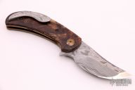 "When I was six years old I received my first knife from my Dad and learned how to use it. A year or so later I got a small Swiss Army knife and have rarely gone a day without carrying and using a knife since. Having grown up primarily in the country with family that was active in the great outdoors there was frequent opportunities to find uses for a knife. Over the years I have collected both fixed and folding knives and put them to use in favorite activities like hunting, hiking, fishing, kayaking or working outdoors. In early 2007 I started designing and making knives and am a fulltime knifemaker. Much of my work now is with folding knives but since the beginning I have used the stock removal method. I cut and grind out all of my own blades, handles and frames by hand using only the highest grades of knife/tool steel and titanium for folding knives. Primarily I use CPM S30V, Elmax, CPM S35VN, CPM 154, and CPM3V. I also work with Damascus steels. I send all of my knife blades to Paul Bos to be heat treated and get a cryogenic double or triple temper to insure the very best edge holding and blade toughness. I believe this is the best, most consistent way, to heat treat the stainless and tool steels I work with in order to maximize the potential of the steel. In 2010 I made my first folding tactical knife and have been enthusiastically developing more models since. I find great inspiration from the work of Bob Lum with his exacting fit and finish and clean simple ergonomic designs. There has also been influence in my work from the books and work of Bob Loveless and Bob Terzuola. Also, it has been a great privilege to work with and call Wayne Goddard a personal friend and mentor.In my designs I strive for simplicity and balance that incorporates functional use and quality materials and craftsmanship. I believe the best knives can be achieved by pulling together the elements of form and function while creating works for enduring use."