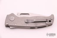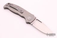 This Compact AD20 by Andrew Demko features a satin finished 20 CV steel blade with a notched thumbrest.  The handle has an all Titanium frame with a tip up stainless steel clip and "Shark" lock release on the spine.  New from Maker!