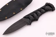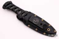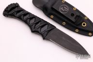 This Blood Shark by Tracker Dan features a black finished blade with a false top edge, .179" blade stock and 1" blade depth. The handle has black cord wrap. Comes with a kydex sheath and the knife will fit in either direction. New from maker at the 2021 Blade Show.