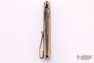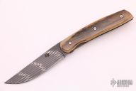 This T Arc Front Flipper by Brad Zinker features a Vegas Forge Web Damascus blade with checkered thumbrest and flipper. The handle has mammoth ivory scales, anodized titanium liners with laser engraved interiors and a tip up anodized titanium clip. Rides on bearings, nice detent, lockup and blade seating. Comes with zippered case. New from maker at the 2021 Blade Show.