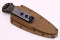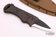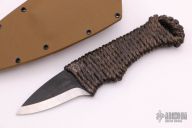 This KaraShark by Tracker Dan features a drop point blade with .111" blade stock and 1" blade depth. The handle has epoxied cord wrap. Comes with a kydex sheath and the knife will fit in either direction. New from maker at the 2021 Blade Show.