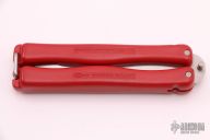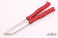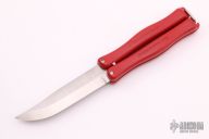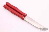 This Vintage CIA Balisong by Hackman has a satin finished stainless steel clip point blade. Handle is red polymer with O-latch at butt. Excellent condition.