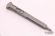 Features: Innovative bolt action structure design Pop-up switch in the side Press top button to activate pen. Pull to retract Available in either TC4 Titanium or Titanium Damascus CNC Integrated cutting process for a flawless finish Highly scratch and corrosion resistant TC4 Titanium alloy Fisher Space pen refill included Each pen individually numbered by CNC Special tactical design for easy operation Elegant appearance, designed for everyday use TActuator12 video: https://youtu.be/zCdaYjDxTs0 Specifications: Material: TC4 titanium or Geek-Ti Weight: 47g/1.66oz Length: 125.8mm/ 4.95in Width: 12mm/0.47in Thickness: 13mm/0.51in Refill: Fisher Space Pen. Has some scuffs, otherwise good condition. #121