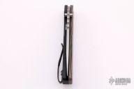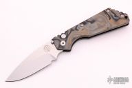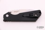 This Pro-Strider SnG Auto by Pro-Tech features a two-tone blade with notched thumbrest. The handle has a custom camo g-10 and black aluminum frame with a custom black coated titanium tip up clip. Comes with original box and papers. Excellent condition.