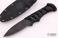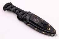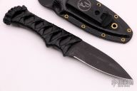 This Blood Shark by Tracker Dan features a black flat ground blade, .178" blade stock and .983" blade depth. The handle has a black cord wrap. Comes with a kydex sheath and the knife will fit in either direction. New from maker at the 2021 Blade Show.