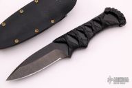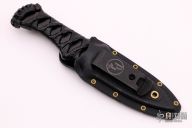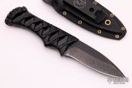 This Blood Shark by Tracker Dan features a black flat ground blade, .181" blade stock and .986" blade depth. The handle has a black cord wrap. Comes with a kydex sheath and the knife will fit in either direction. New from maker at the 2021 Blade Show.